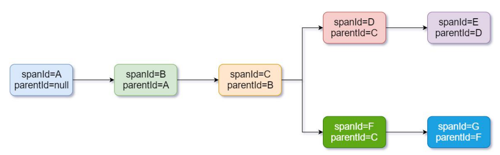 简化后:可以看到每个服务节点包含 spanID 以及一个 ParentId